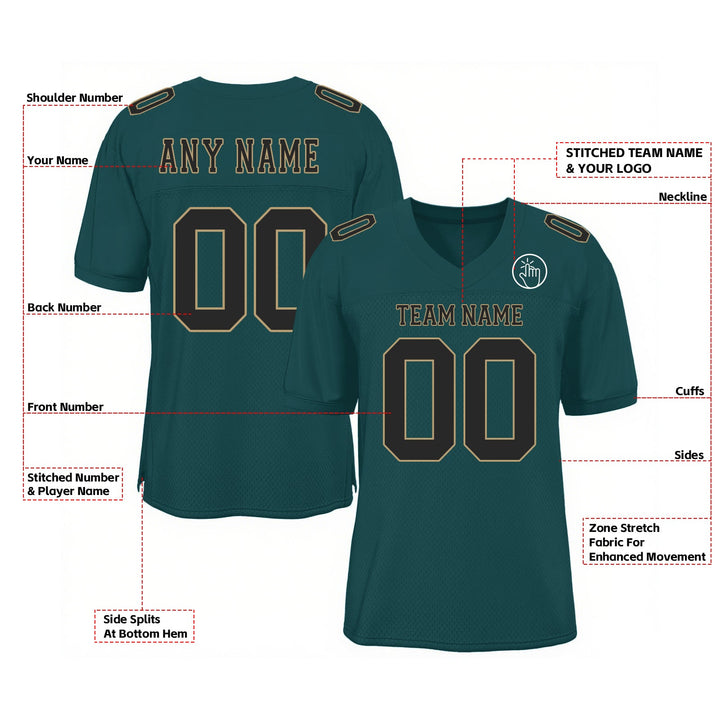 Custom Midnight Green Black-Old Gold Mesh Classic Style Authentic Sports Football Jersey