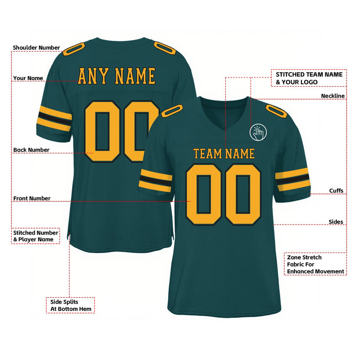 Custom Midnight Green Gold-Black Mesh Classic Style Authentic Sports Football Jersey