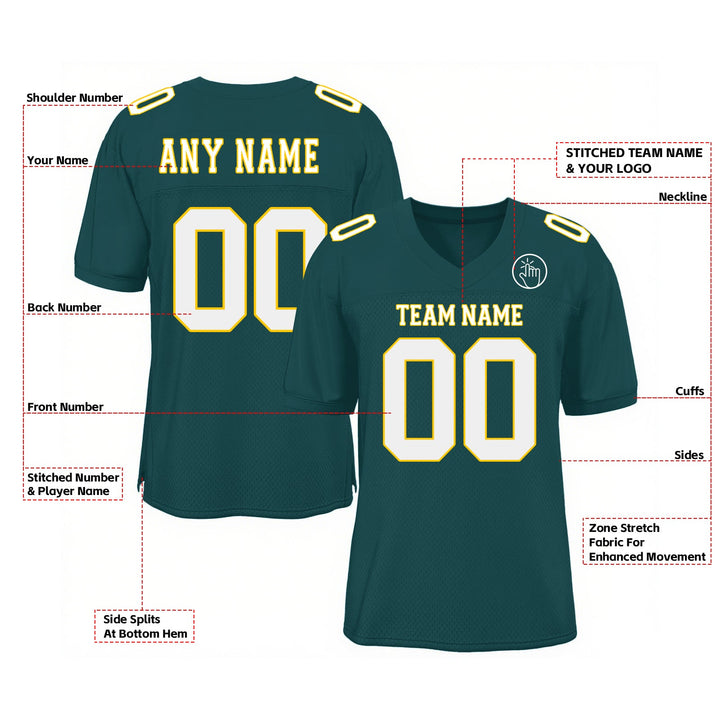 Custom Midnight Green White-Gold Mesh Classic Style Authentic Sports Football Jersey