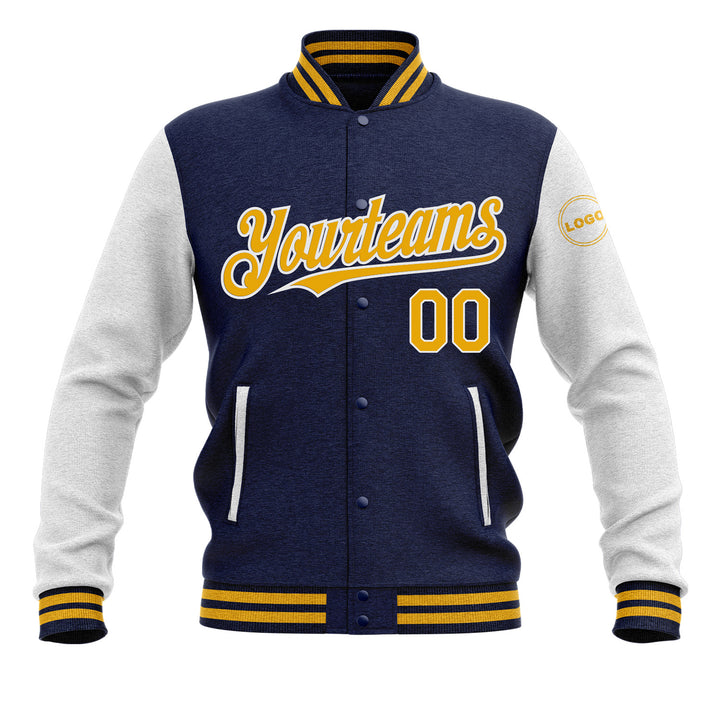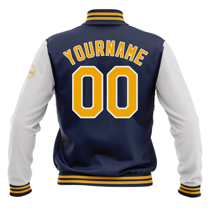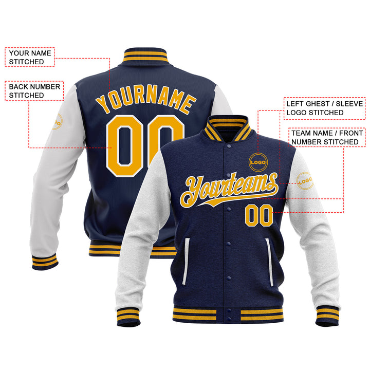 Custom Navy Gold-White Classic Style Two Tone Bomber Varsity Letterman Embroidered Jacket