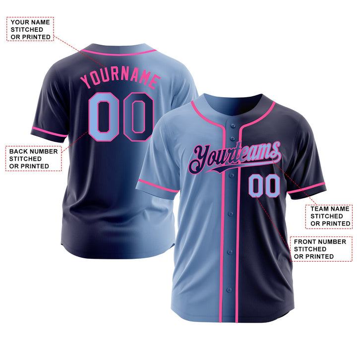 Custom Navy Light Blue-Pink Gradient Fashion Classic Style Authentic Sports Baseball Jersey