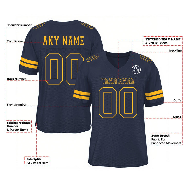 Custom Navy Navy-Gold Mesh Classic Style Authentic Sports Football Jersey