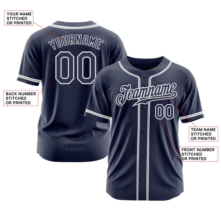 Custom Navy Navy-Gray Classic Style Authentic Sports Baseball Jersey