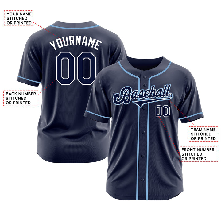 Custom Navy Navy-Powder Blue Classic Style Authentic Sports Baseball Jersey