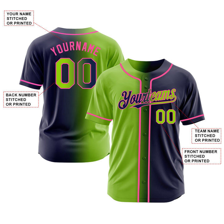 Custom Navy Neon Green-Pink Gradient Fashion Classic Style Authentic Sports Baseball Jersey