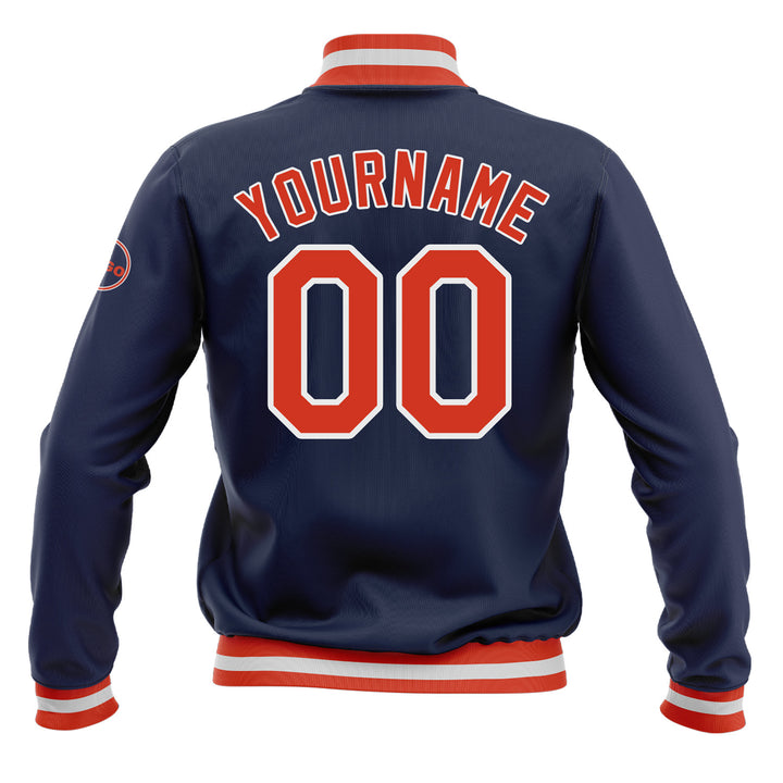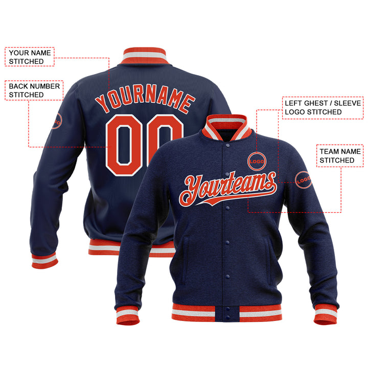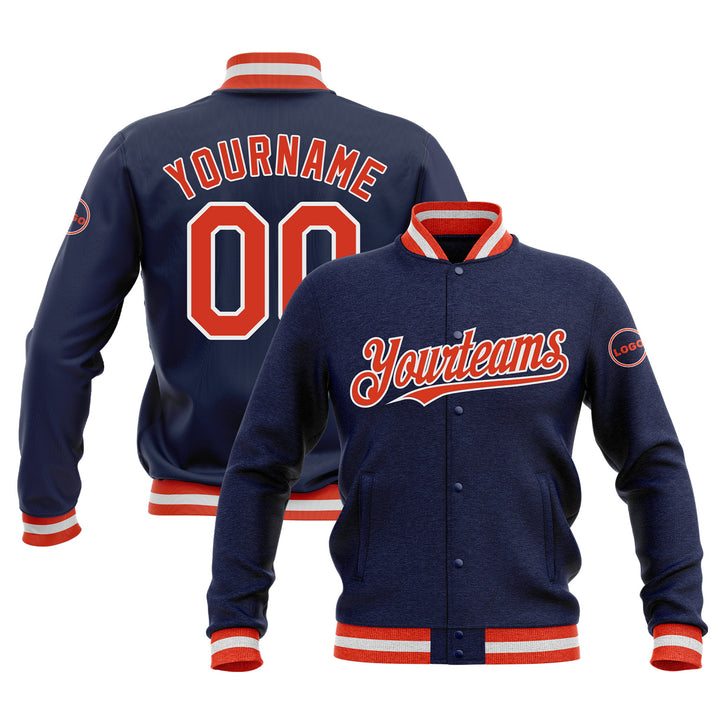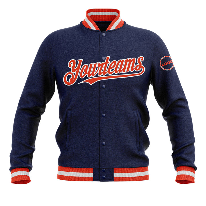 Custom Navy Orange-White Bomber Varsity Letterman Embroidered Jacket
