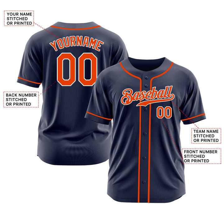 Custom Navy Orange-White Classic Style Authentic Sports Baseball Jersey