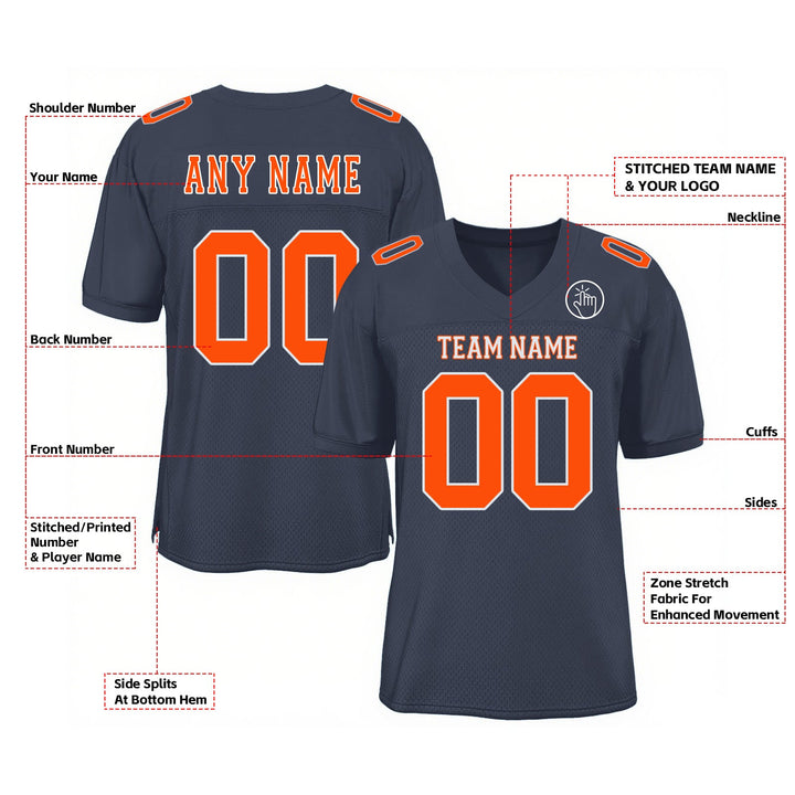Custom Navy Orange-White Mesh Classic Style Authentic Sports Football Jersey