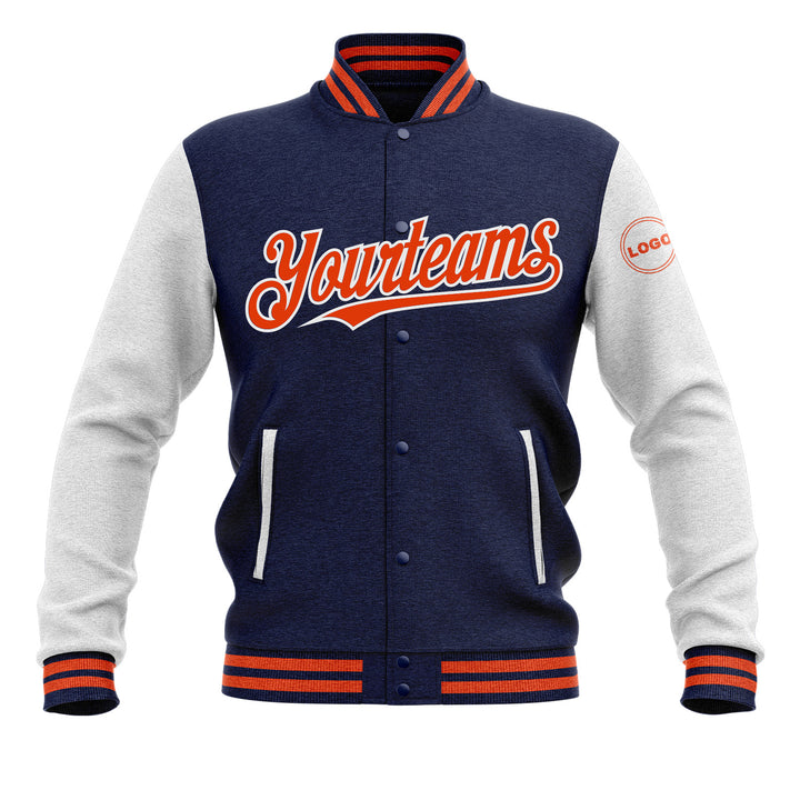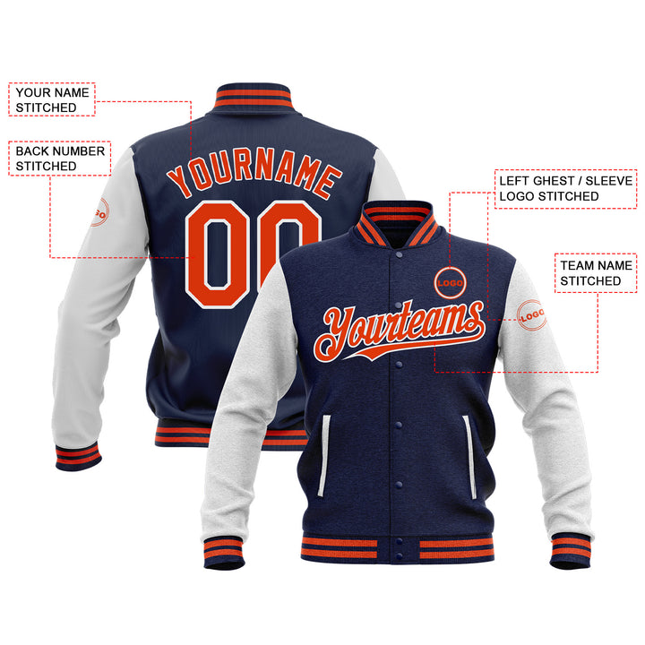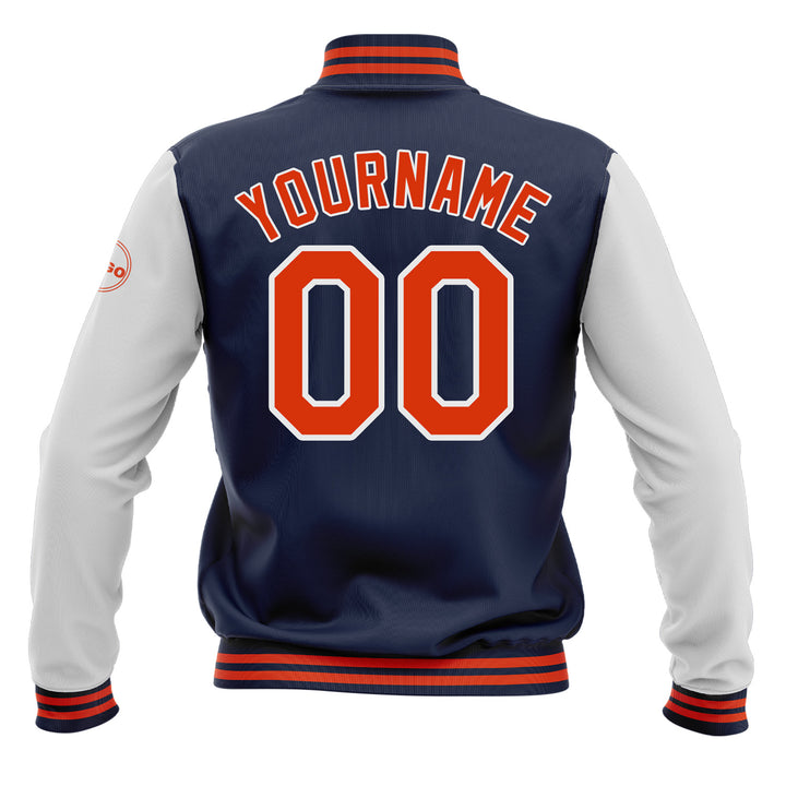 Custom Navy Orange-White Two Tone Bomber Varsity Letterman Embroidered Jacket