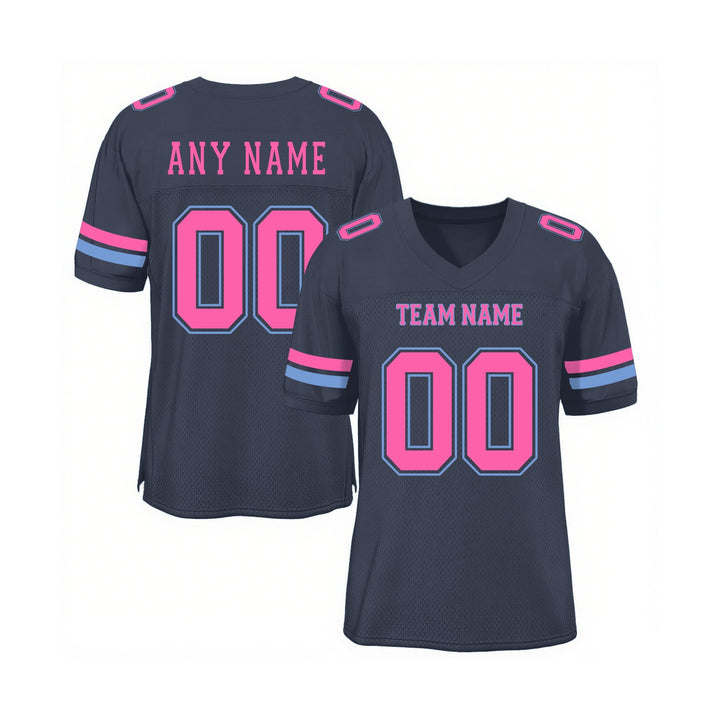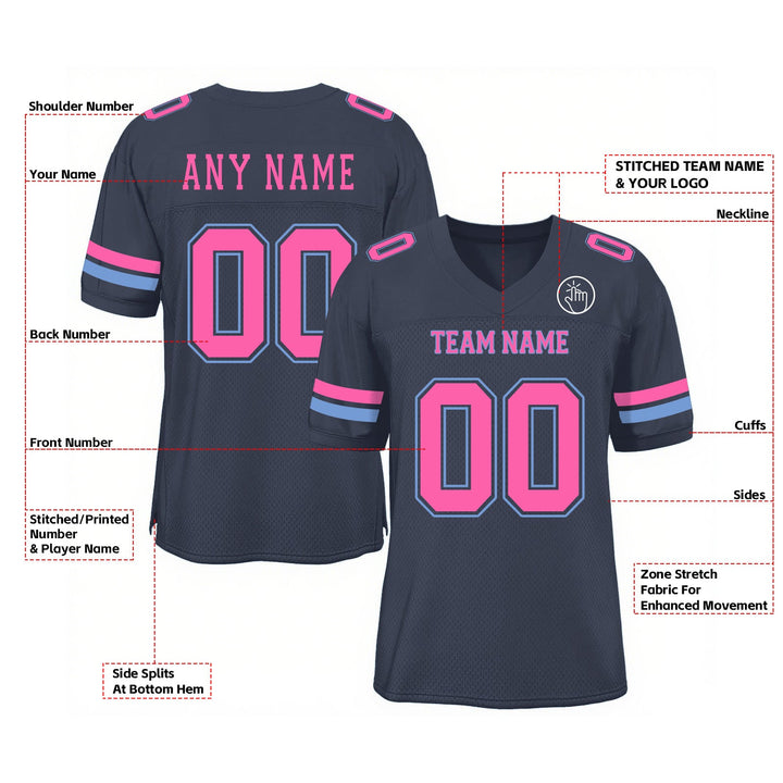 Custom Navy Pink-Light Blue Mesh Classic Style Authentic Sports Football Jersey