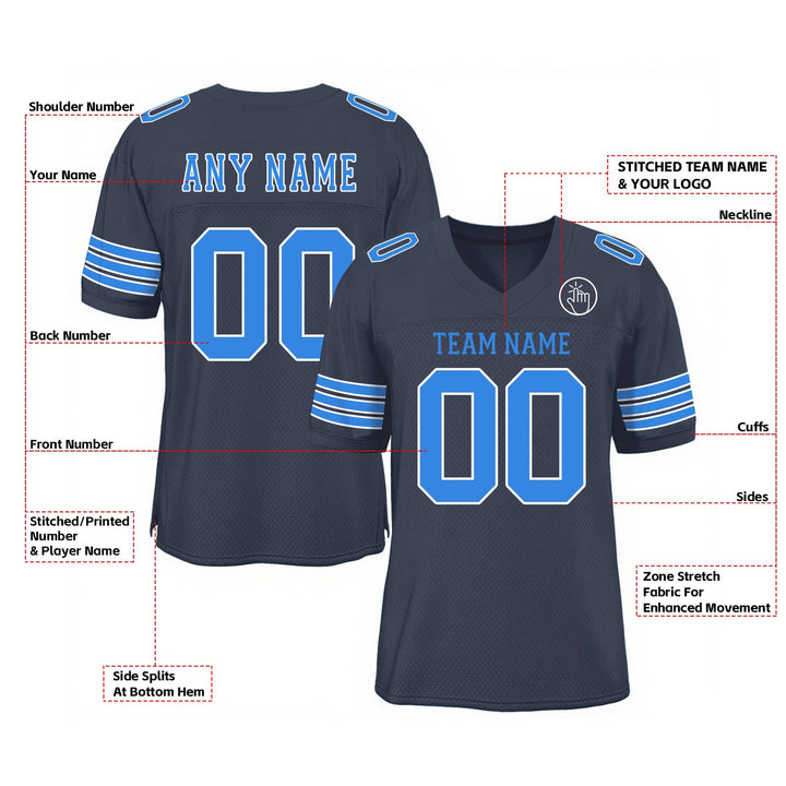 Custom Navy Powder Blue-White Mesh Classic Style Authentic Sports Football Jersey