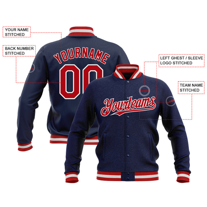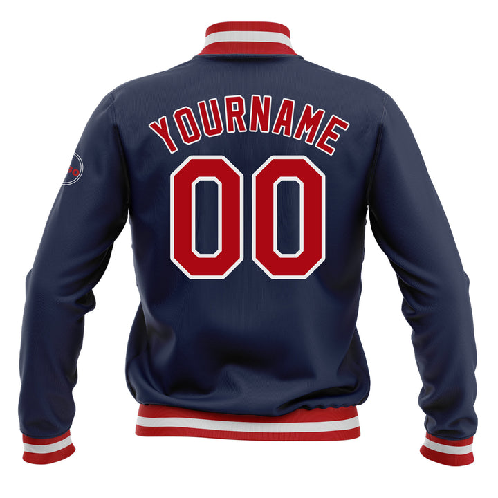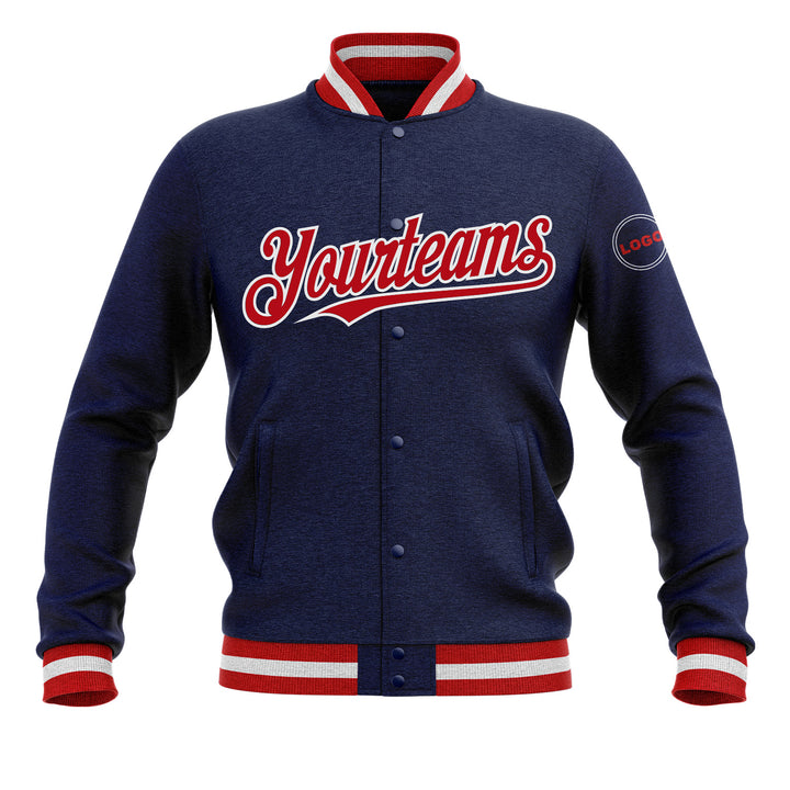 Custom Navy Red-White Bomber Varsity Letterman Embroidered Jacket