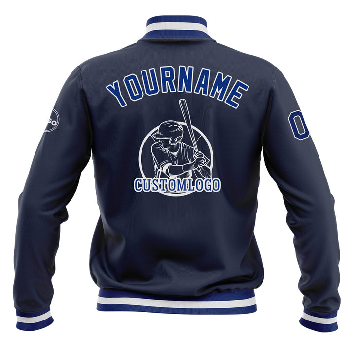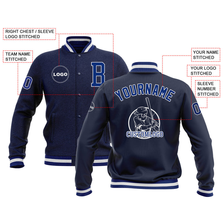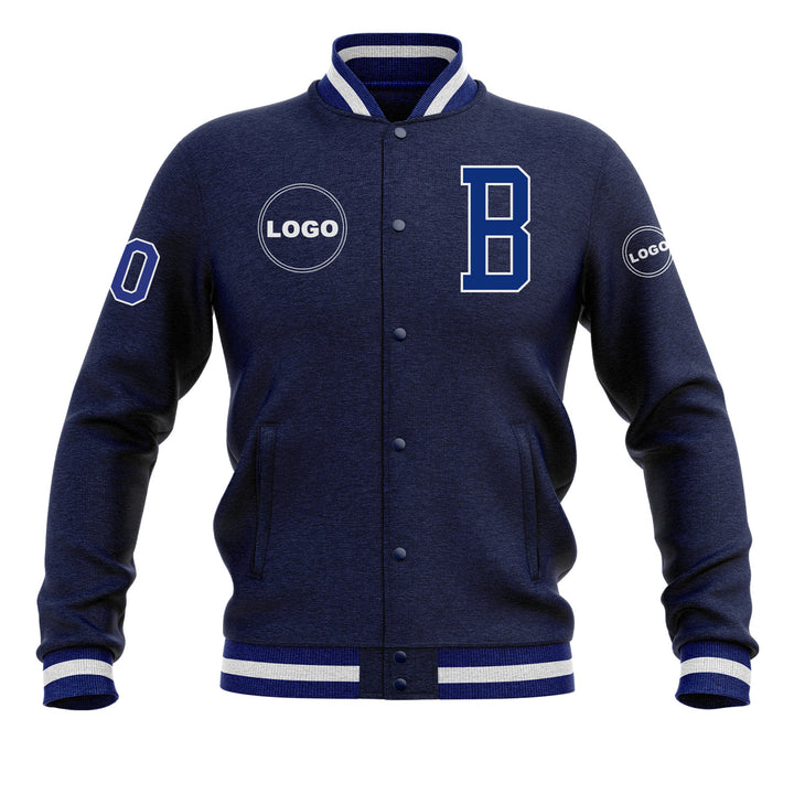 Custom Navy Royal-White Bomber Varsity Letterman Embroidered Jackets