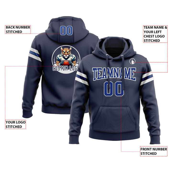Custom Navy Royal-White Personalized Sports Team Embroidered Pullover Hoodie