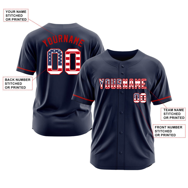 Custom Navy USA Flag-Red Classic Style Authentic Sports Baseball Jersey