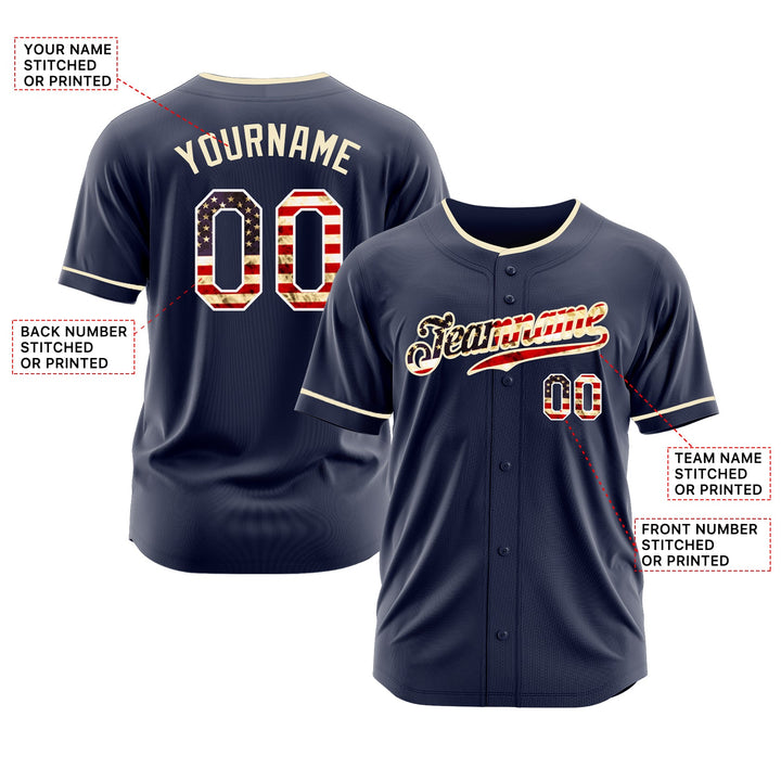 Custom Navy Vintage USA Flag-Cream Classic Style Authentic Sports Baseball Jersey