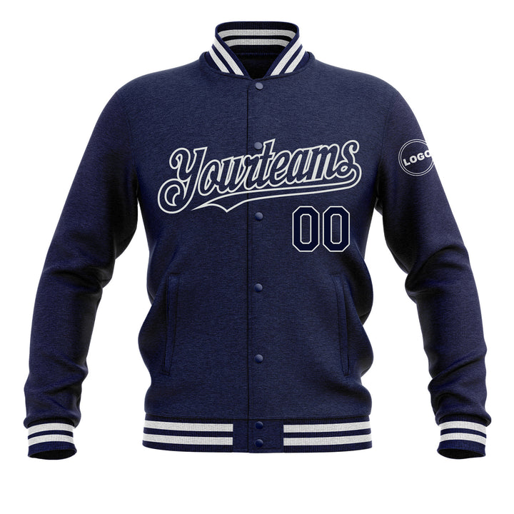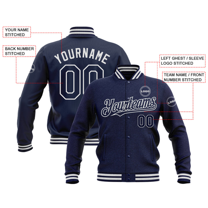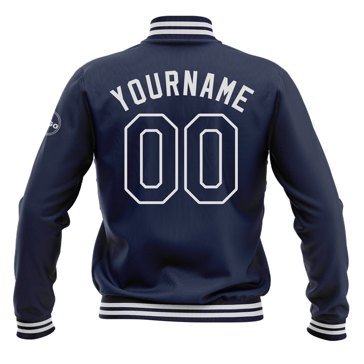 Custom Navy White Classic Style Bomber Varsity Letterman Embroidered Jacket