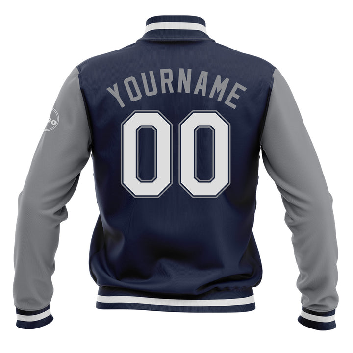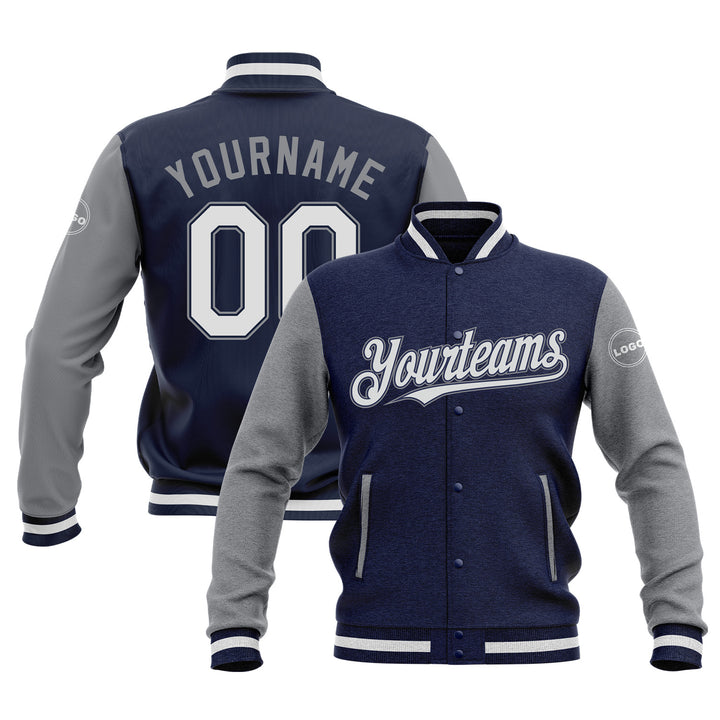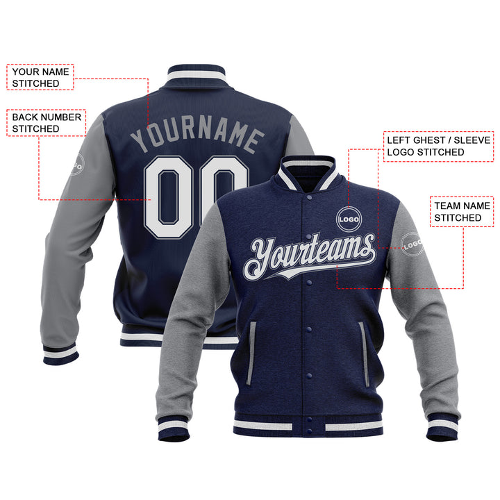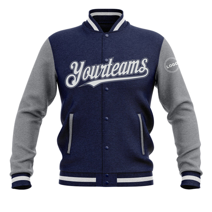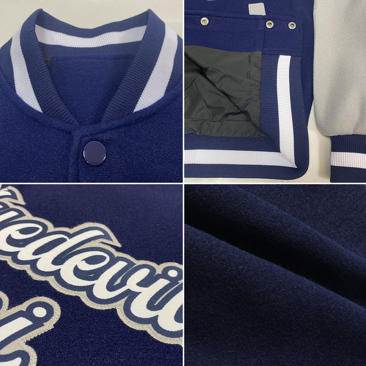 Custom Navy White-Gray Two Tone Bomber Varsity Letterman Embroidered Jacket