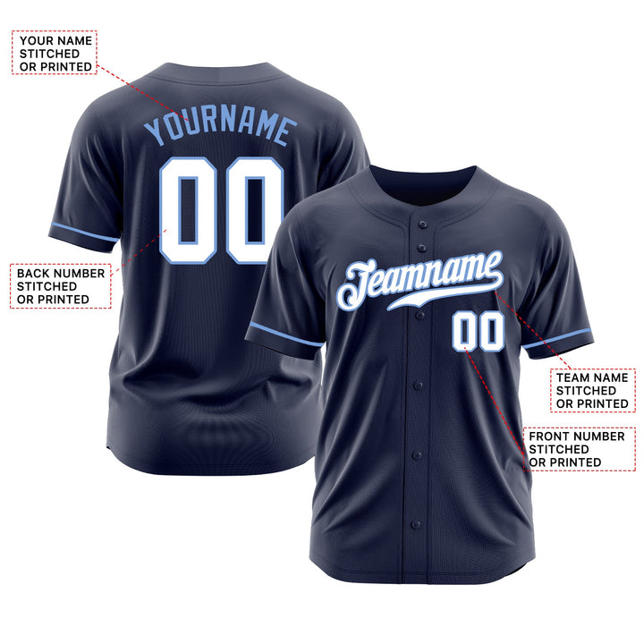 Custom Navy White-Light Blue Classic Style Authentic Sports Baseball Jersey