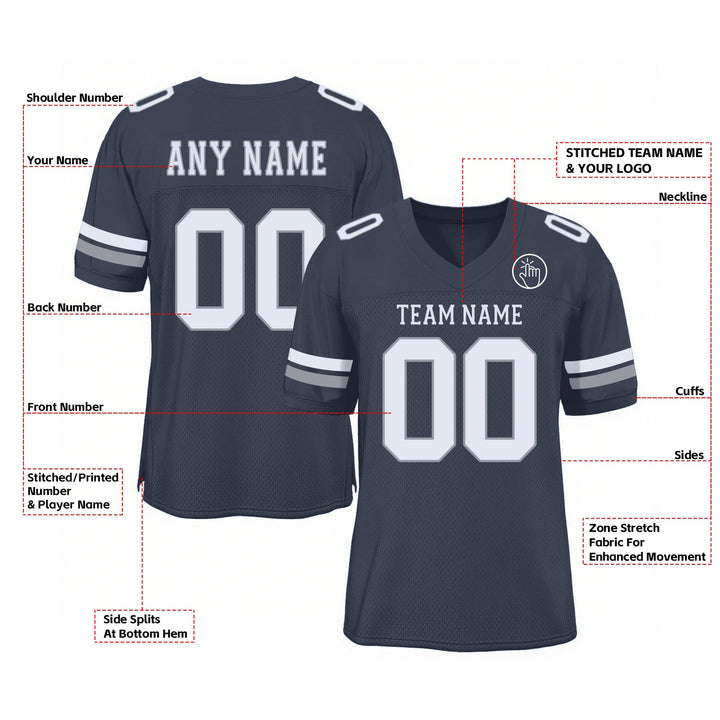 Custom Navy White-Light Gray Mesh Classic Style Authentic Sports Football Jersey
