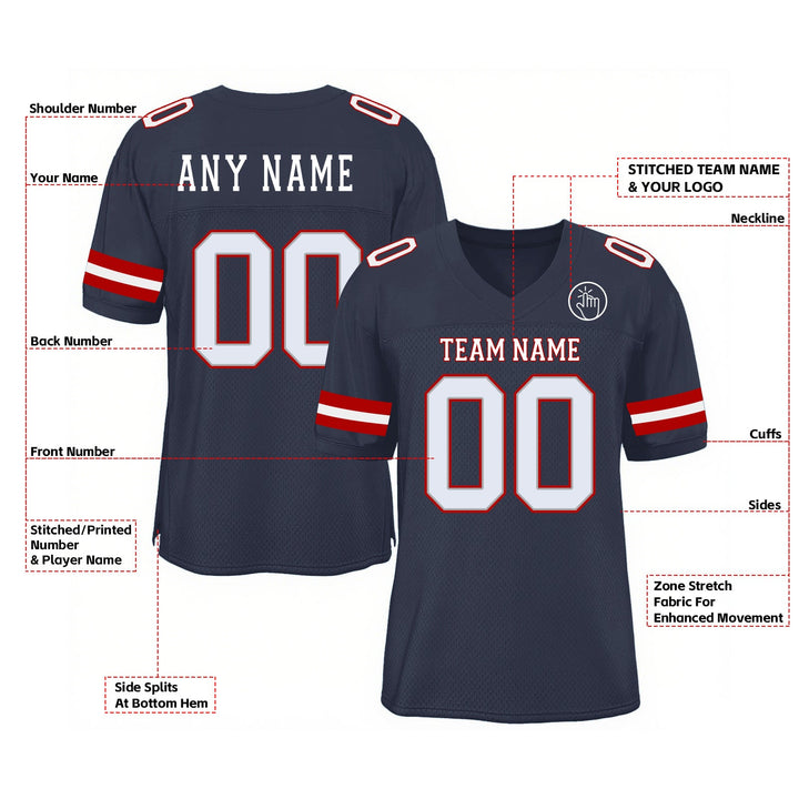 Custom Navy White-Red Mesh Classic Style Authentic Sports Football Jersey