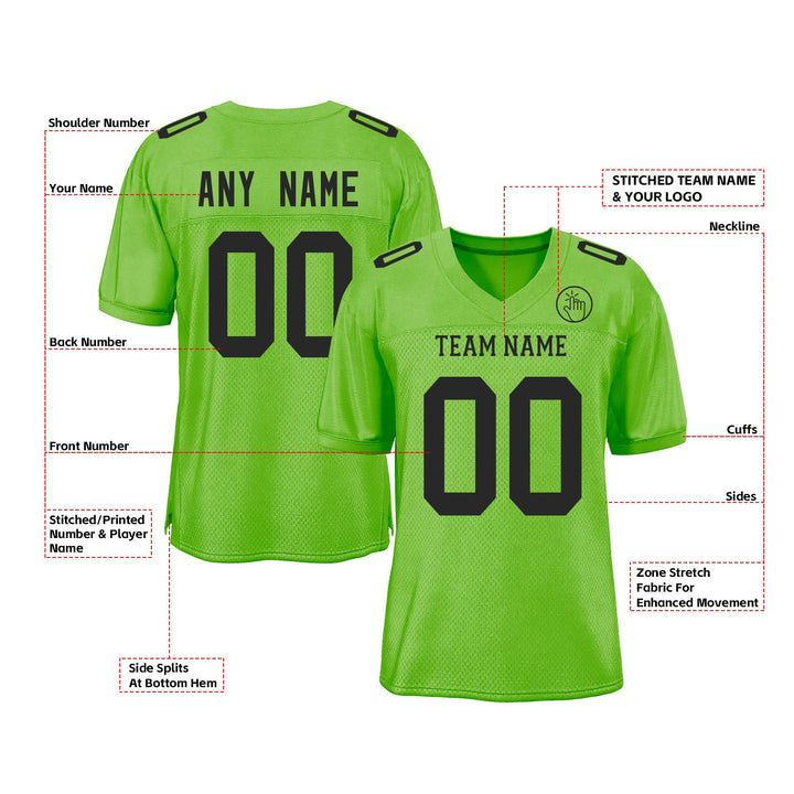 Custom Neon Green Black Mesh Classic Style Authentic Sports Football Jersey