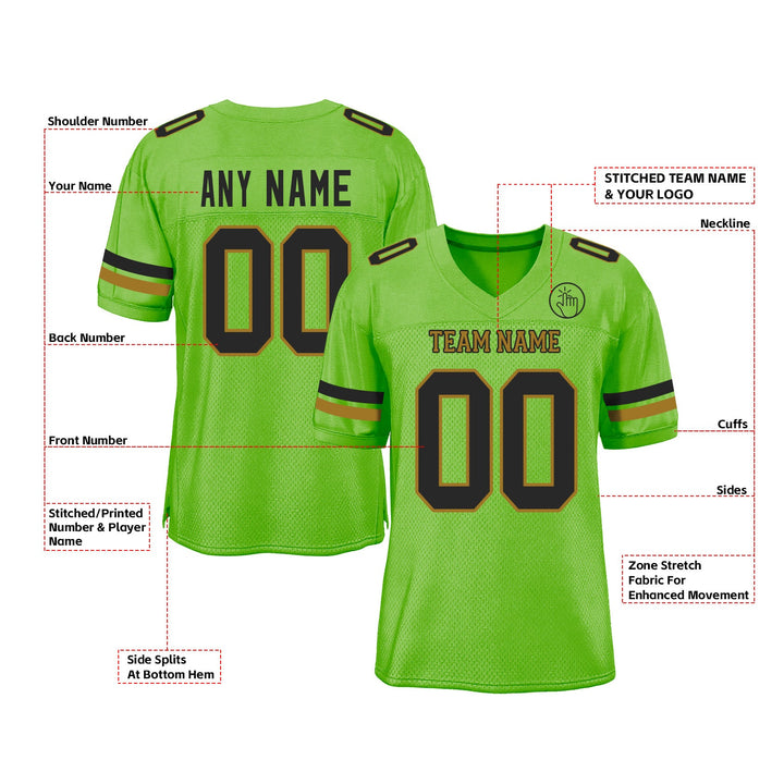 Custom Neon Green Black-Old Gold Mesh Classic Style Authentic Sports Football Jersey