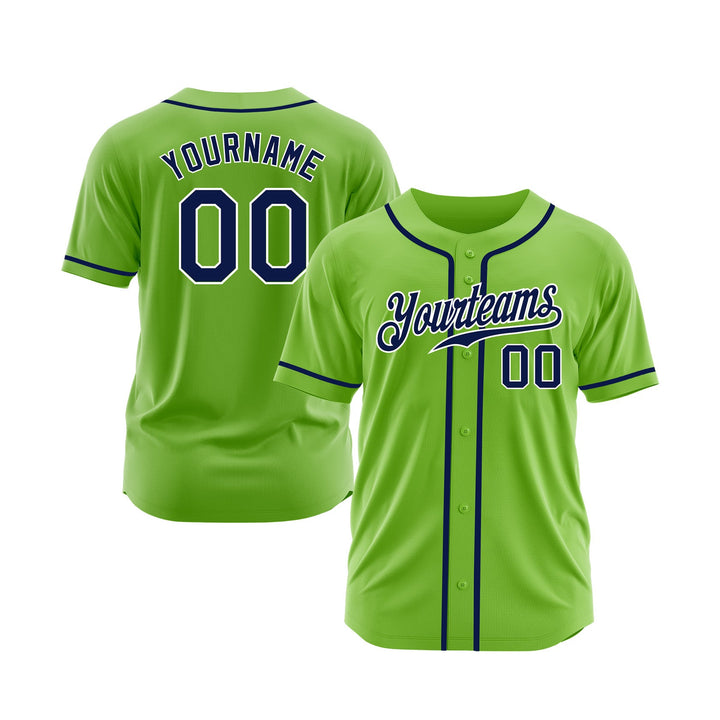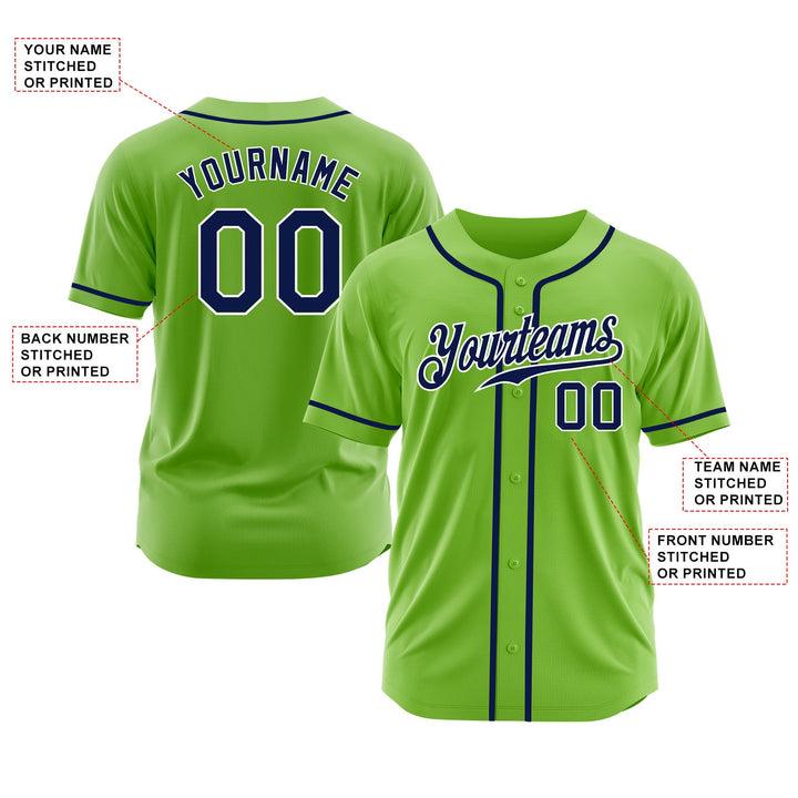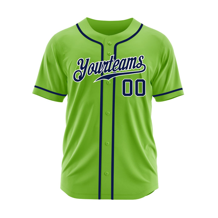 Custom Neon Green Navy-White Classic Style Authentic Sports Baseball Jersey