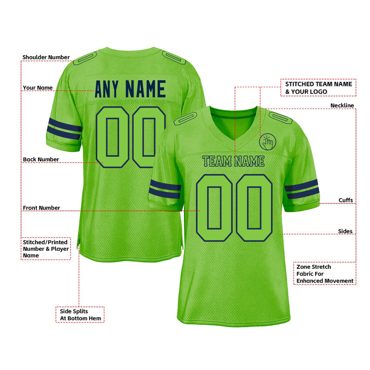 Our custom football jersey allows you to create your own design, adding your name, team logo, or any special graphics that represent your team spirit. Made from high-quality materials, it offers exceptional comfort and durability, ensuring you perform at your best in your custom uniform.