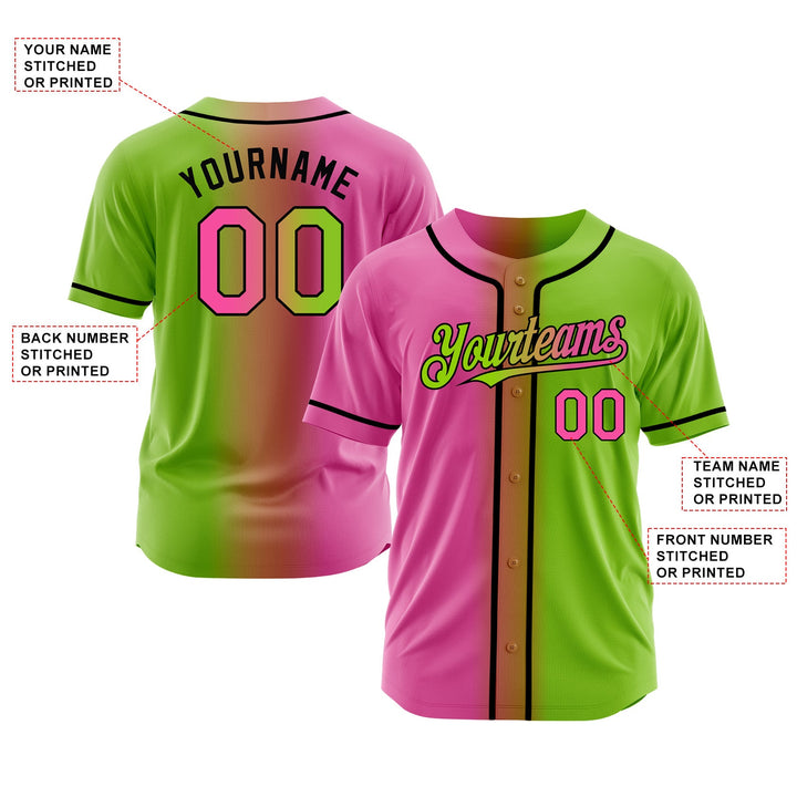 Custom Neon Green Pink-Black Gradient Fashion Classic Style Authentic Sports Baseball Jersey