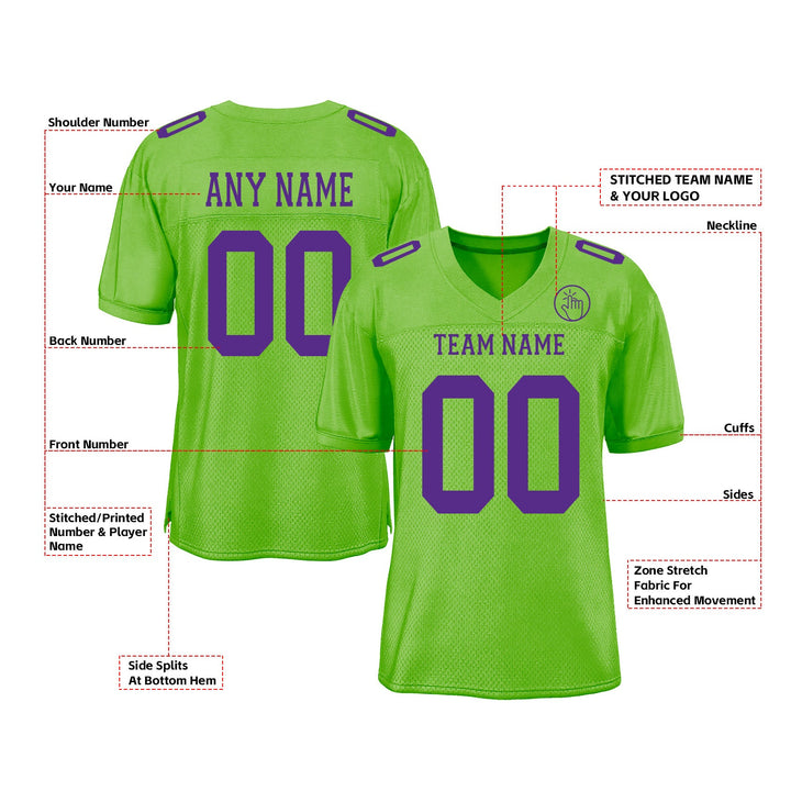 Custom Neon Green Purple Mesh Classic Style Authentic Sports Football Jersey