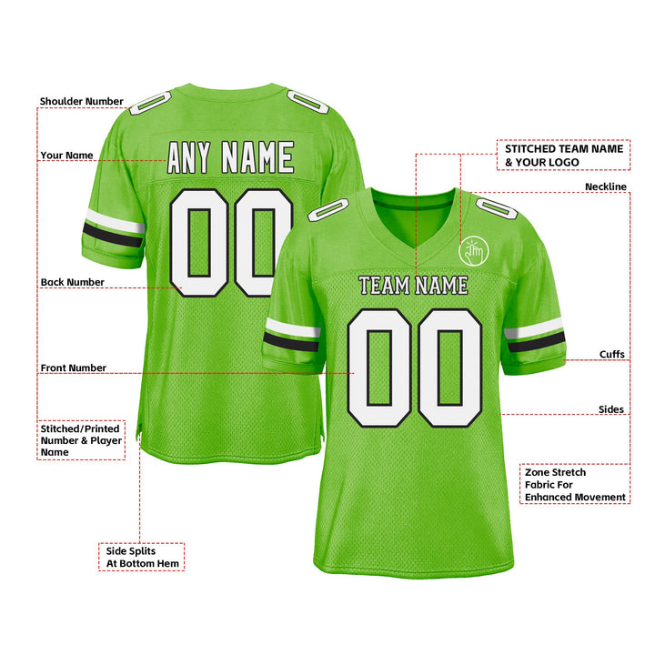 Custom Neon Green White-Black Mesh Classic Style Authentic Sports Football Jersey