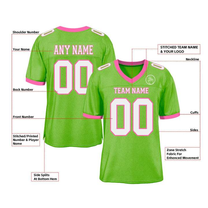 Custom Neon Green White-Pink Mesh Classic Style Authentic Sports Football Jersey