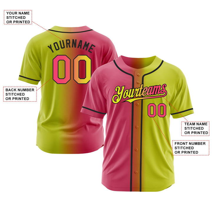 Custom Neon Yellow Neon Pink-Black Gradient Fashion Classic Style Authentic Sports Baseball Jersey