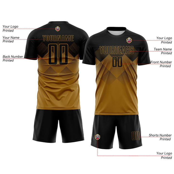 Custom Old Gold Black Classic Uniform Training Sets Soccer Jersey For Adults/Kids