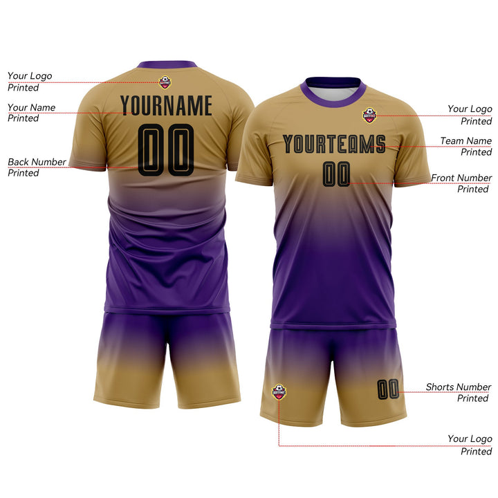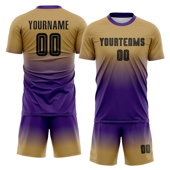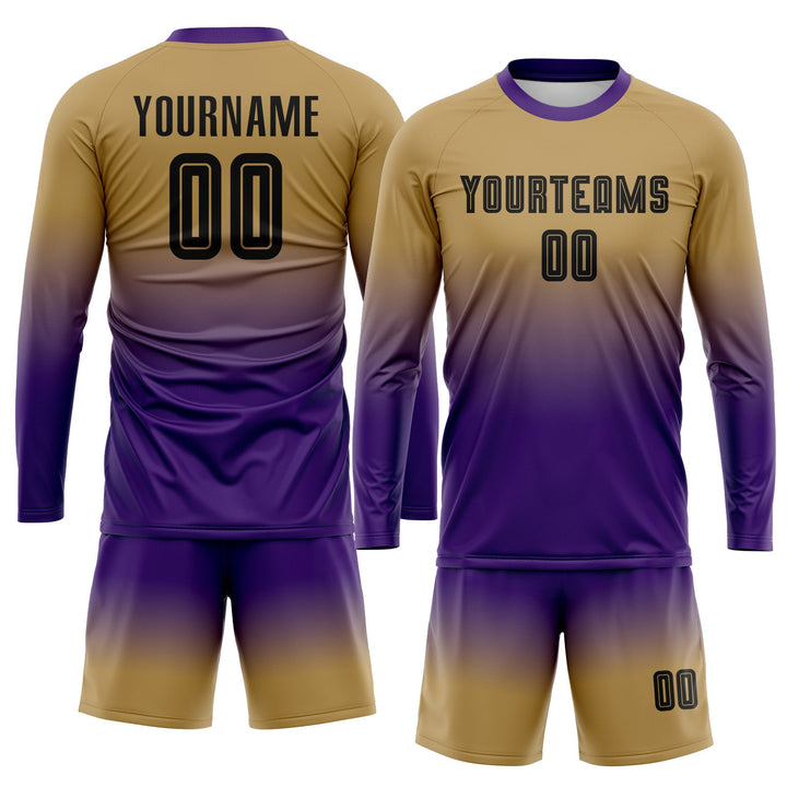 Custom Old Gold Black-Purple Long Sleeve Fade Fashion Classic Uniform Training Sets Soccer Jersey For Adults/Kids