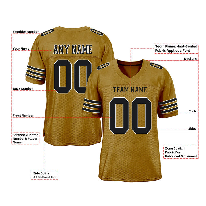 Custom Old Gold Black-White Mesh Classic Style Authentic Sports Football Jersey
