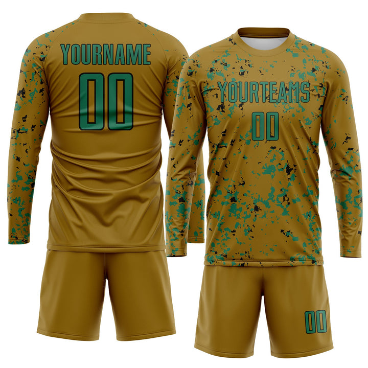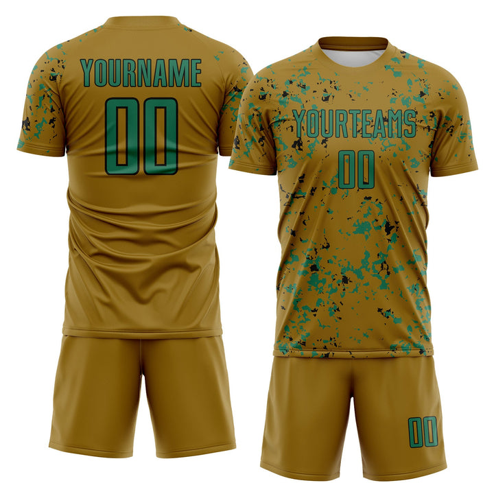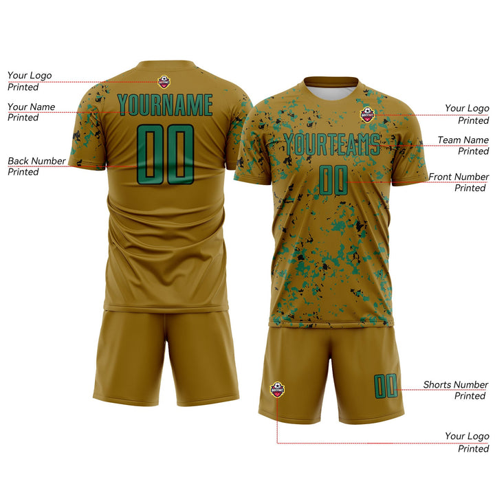 Custom Old Gold Kelly Green-Black Abstract Fragment Art Classic Uniform Training Sets Soccer Jersey For Adults/Kids