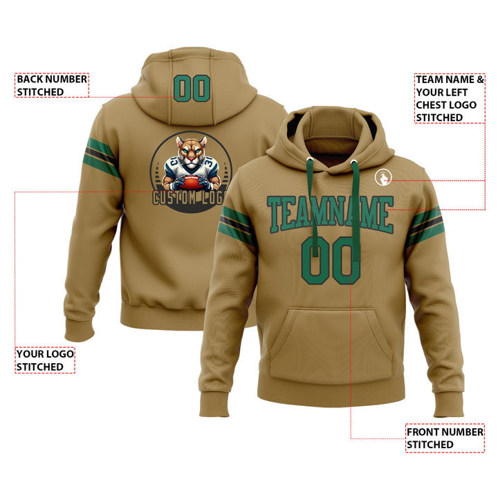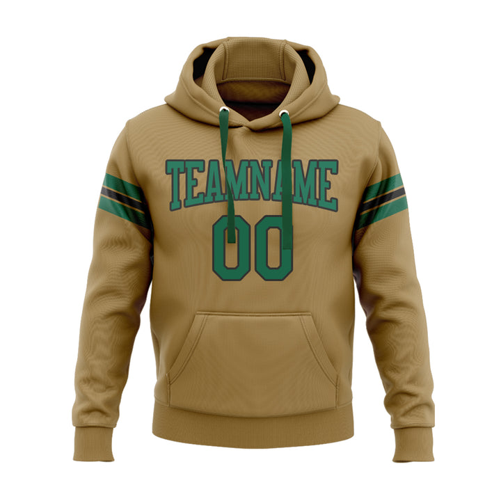 Custom Old Gold Kelly Green-Black Personalized Sports Team Embroidered Pullover Hoodie