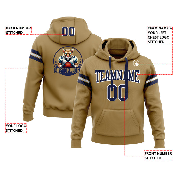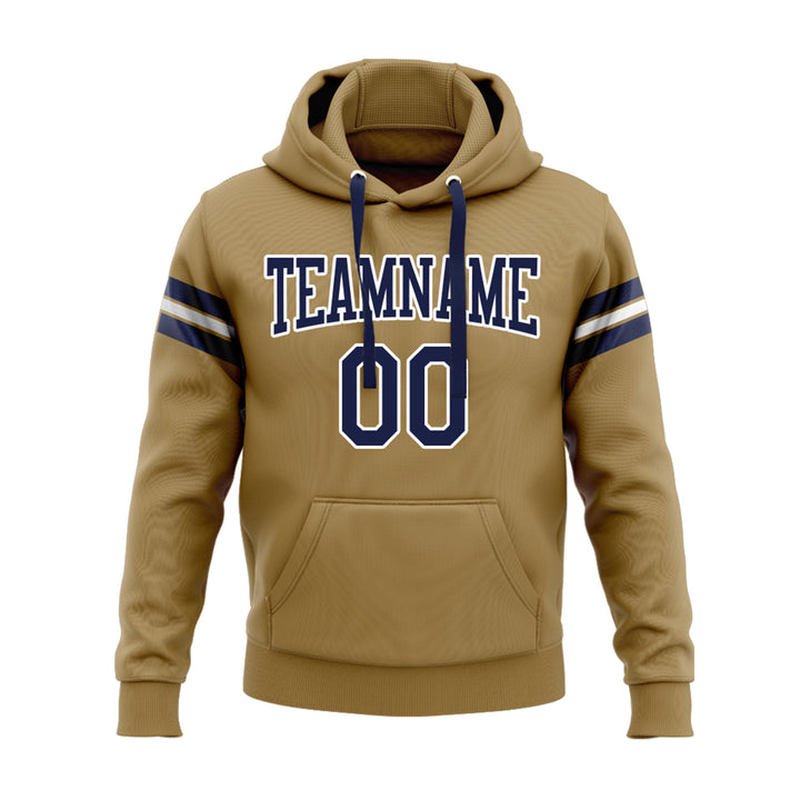 Custom Old Gold Navy-White Personalized Sports Team Embroidered Pullover Hoodie