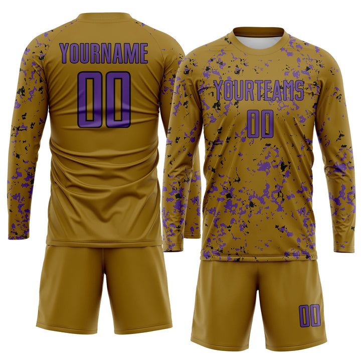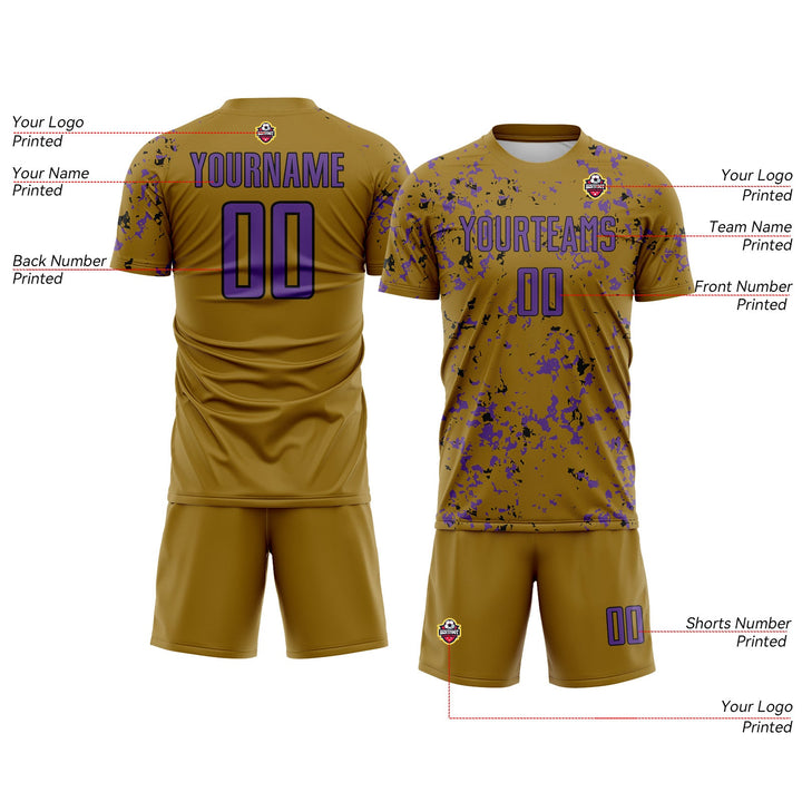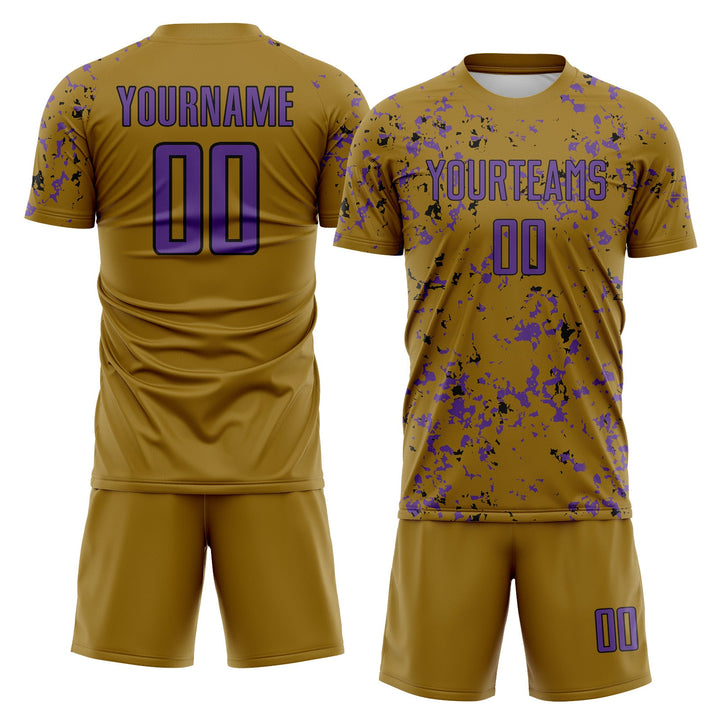 Custom Old Gold Purple-Black Abstract Fragment Art Classic Uniform Training Sets Soccer Jersey For Adults/Kids