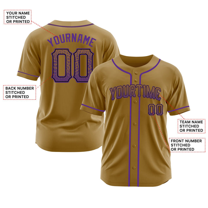 Custom Old Gold Purple-Black Classic Style Authentic Sports Baseball Jersey