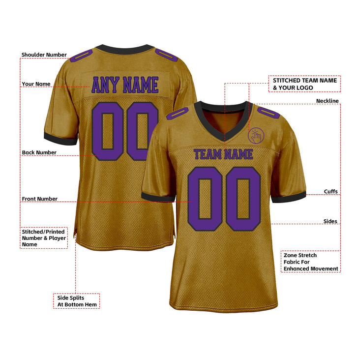 Custom Old Gold Purple-Black Mesh Classic Style Authentic Sports Football Jersey