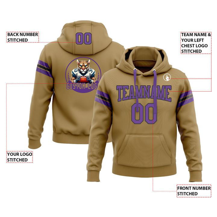Custom Old Gold Purple-Black Personalized Sports Team Embroidered Pullover Hoodie