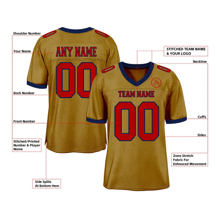 Custom Old Gold Red-Navy Mesh Classic Style Authentic Sports Football Jersey