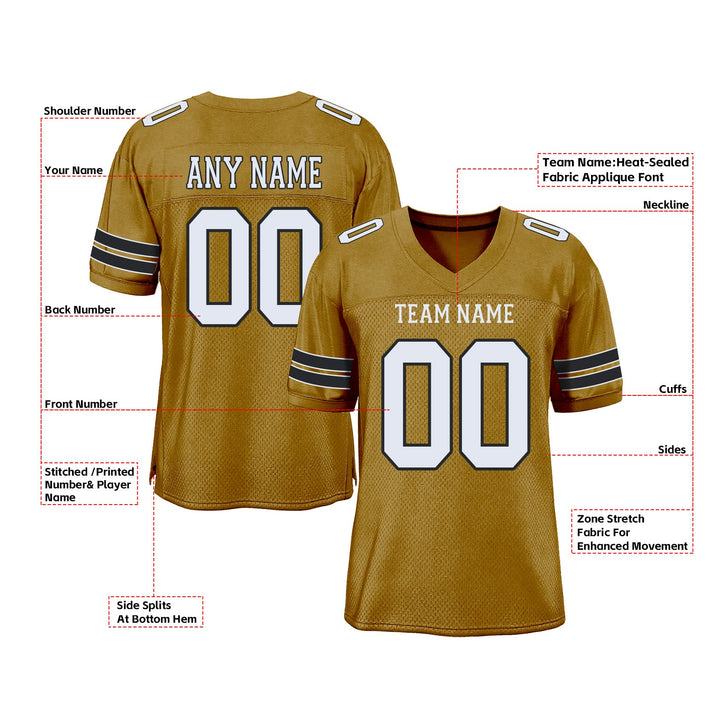 Custom Old Gold White-Black Mesh Classic Style Authentic Sports Football Jersey