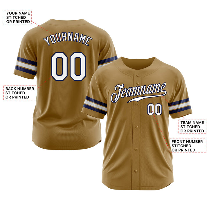 Custom Old Gold White-Navy Classic Style Authentic Sports Baseball Jersey