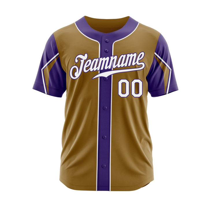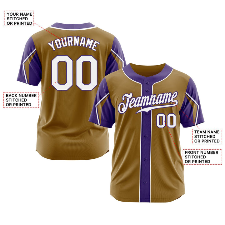 Custom Old Gold White-Purple 3 Colors Arm Shapes Classic Style Authentic Sports Baseball Jersey