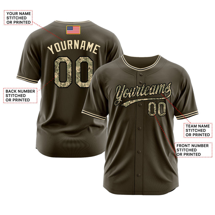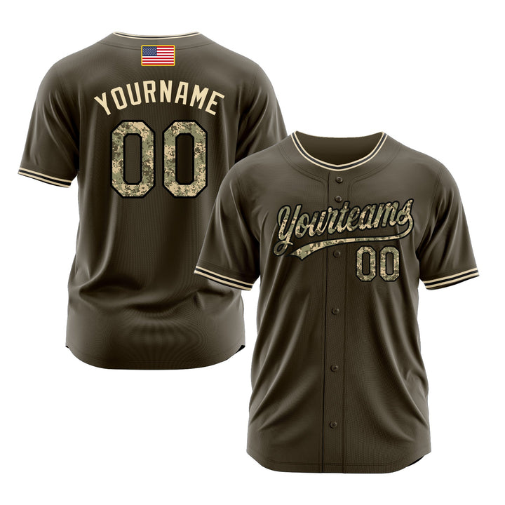 Custom Olive Camo-Black Classic Style Authentic American Flag Fashion Salute To Service Sports Baseball Jersey