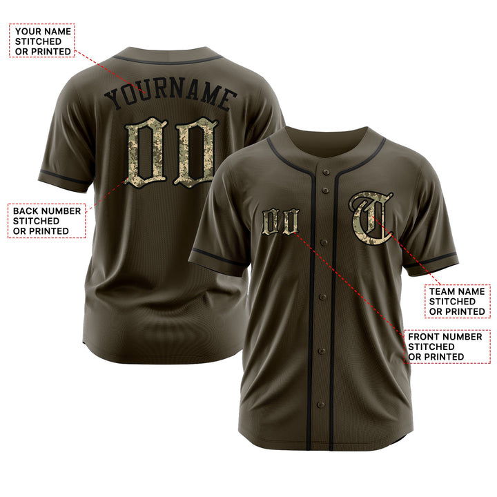 Custom Olive Camo-Black Classic Style Authentic Salute To Service Sports Baseball Jersey
